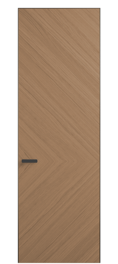 Полотно Rift в скрытом алюминиевом коробе становится полноценным элементом декора. В коллекции представлено 9 моделей дверей в высоте до 3 метров. Рисунок раскладки шпона варьируется от простого до сложного. «Рубашка» для каждого полотна подбирается вручную по цвету, текстуре и фактуре.